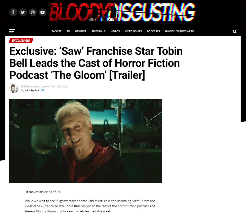 Bloody Disgusting - ‘Saw’ Franchise Star Tobin Bell Leads the Cast of Horror Fiction Podcast ‘The Gloom’ [Trailer] (4/28/21)