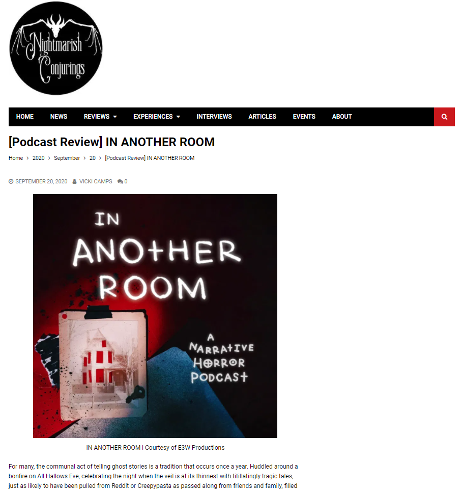 Nightmarish Conjurings - [Podcast Review] IN ANOTHER ROOM (9/20/20)